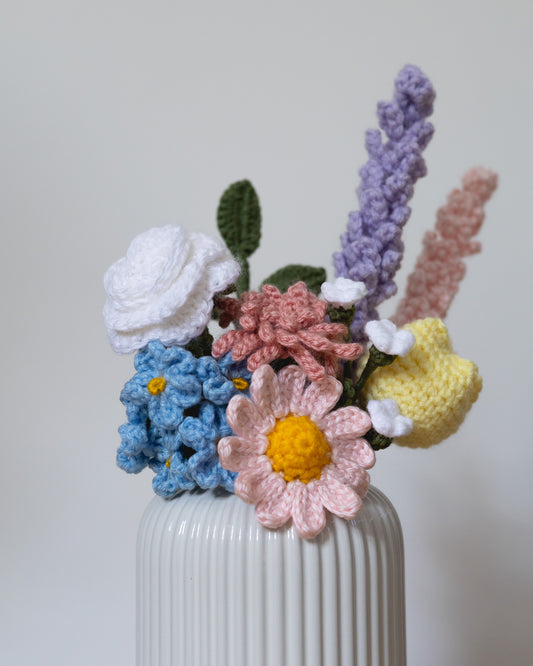 Explore our collection of handcrafted crochet flowers and customize your own bouquet.