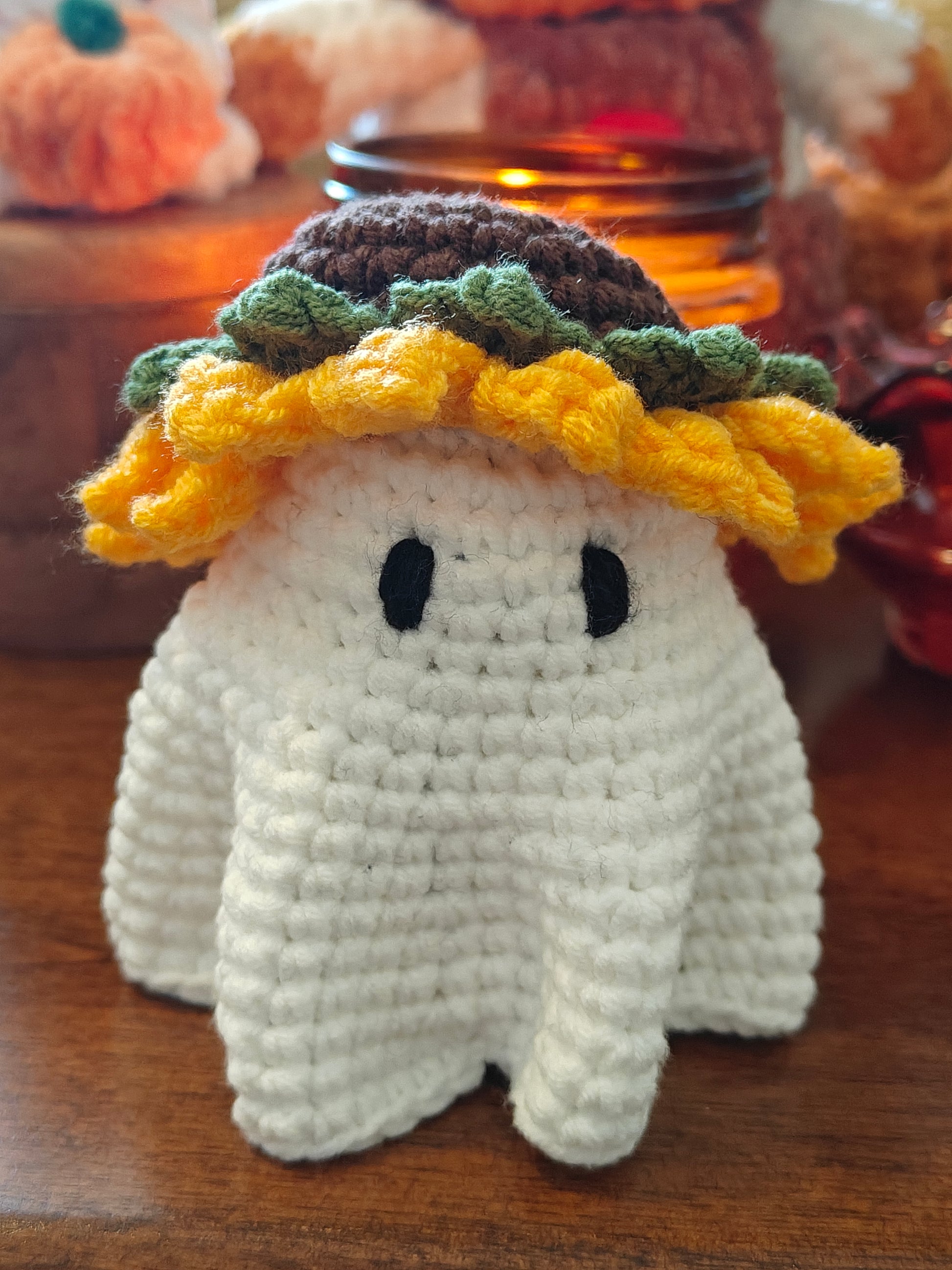This hand-crocheted cutie can be adopted with or without a detachable mushroom hat for a spook-tacular disguise. Perfect for Halloween, or anytime you want a little boo in your life.